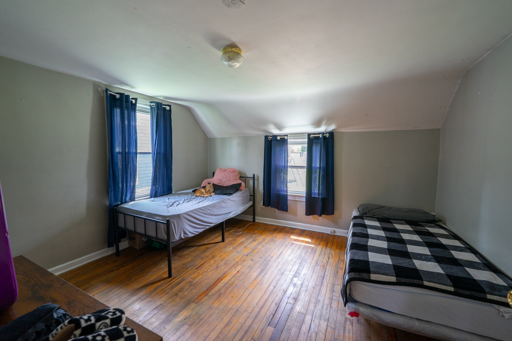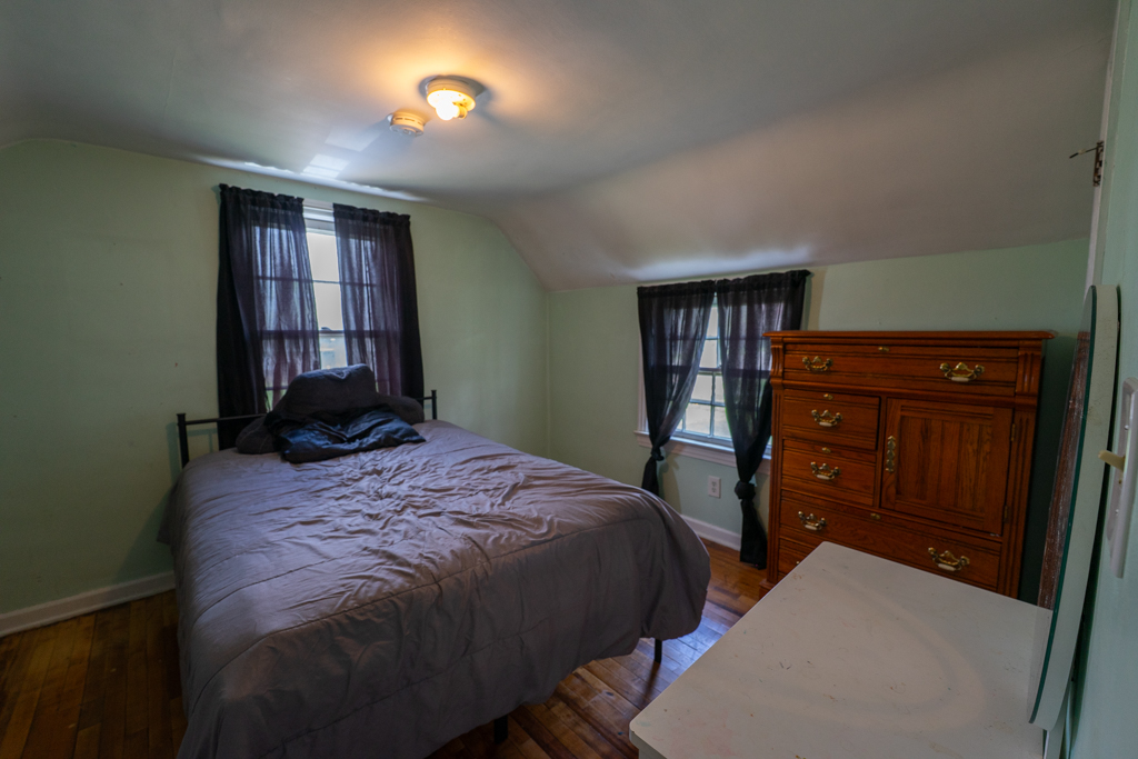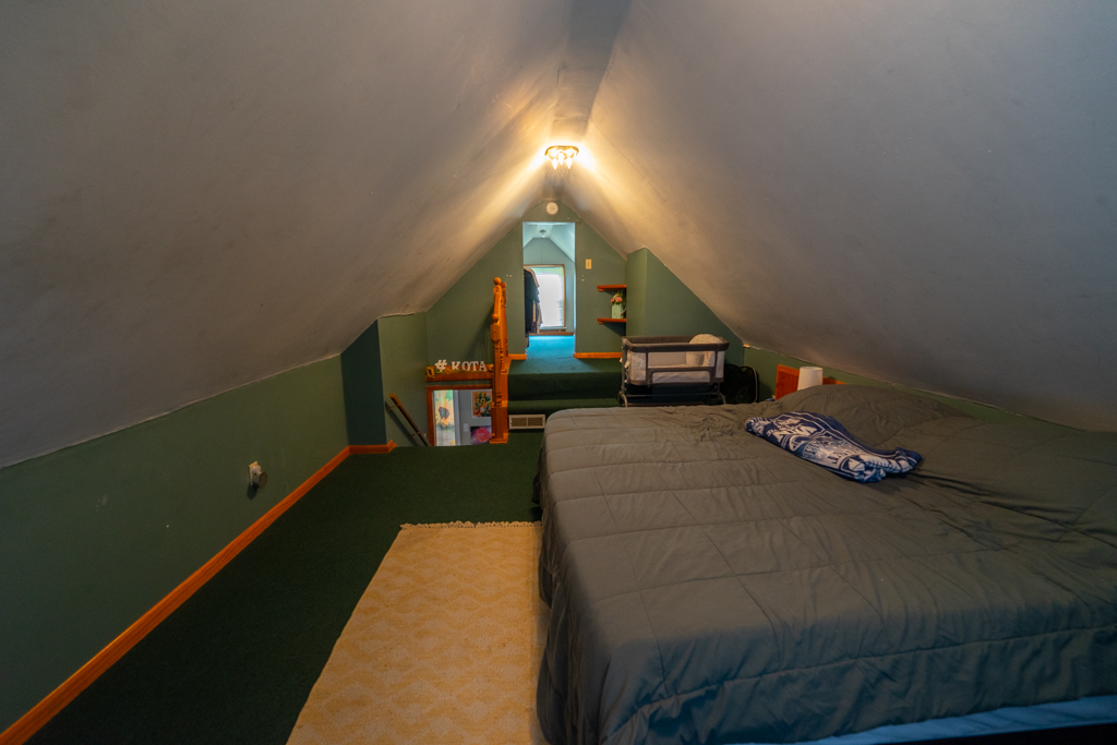 The main floor includes two bedrooms with original hardwood floors and ample closet space, while the entire second level serves as a private third bedroom retreat, complete with a spacious walk-in closet.